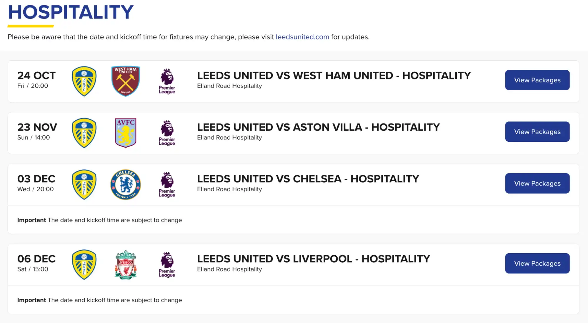 These packages are sold by the club’s approved third-party partners and are aimed at overseas fans who want a guaranteed, hassle-free way to see a game at Elland Road.